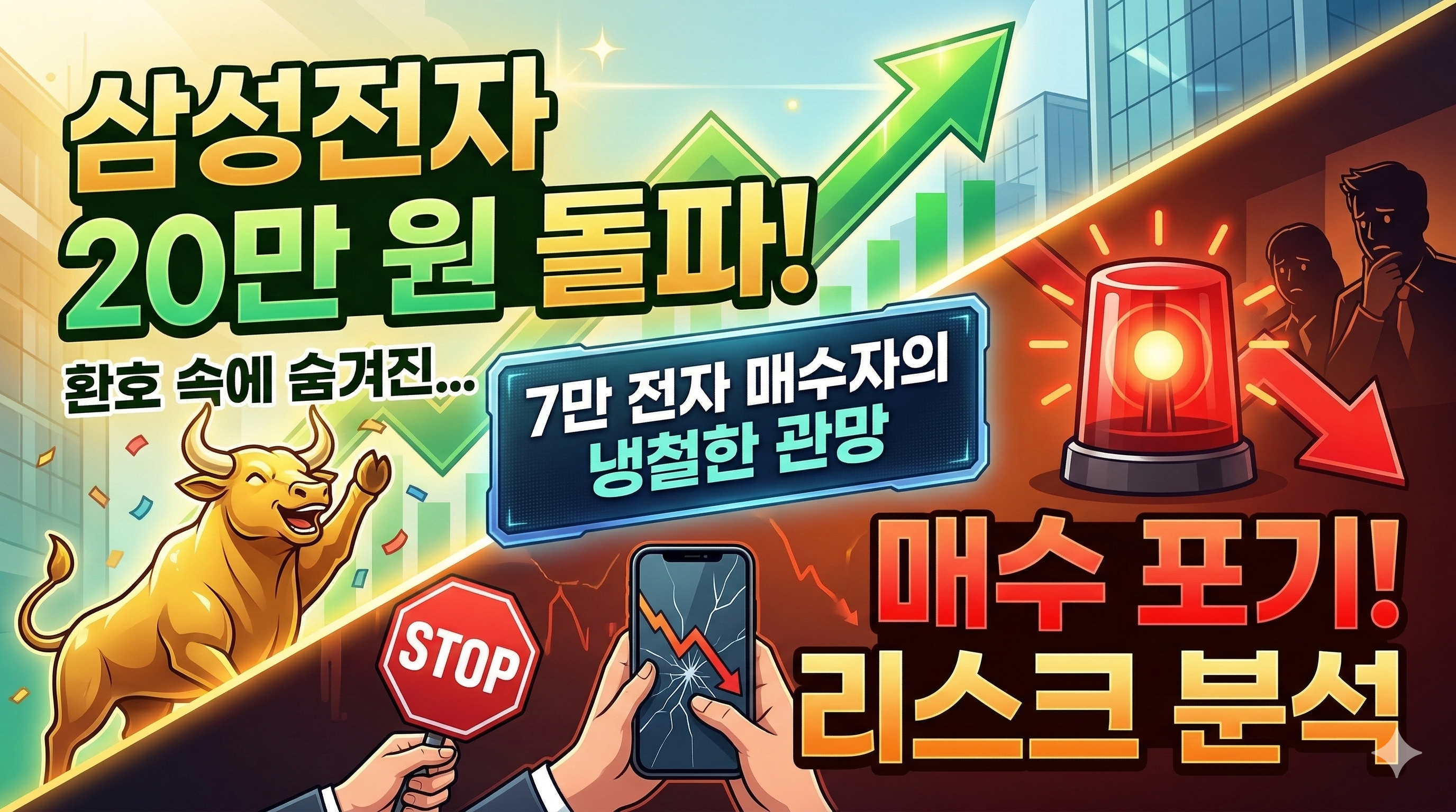 오늘은 제가 왜 20만 전자의 화려한 축포 속에서 한 발짝 물러서기로 했는지, 그 현실적인 이유를 공유해 보려고 합니다.