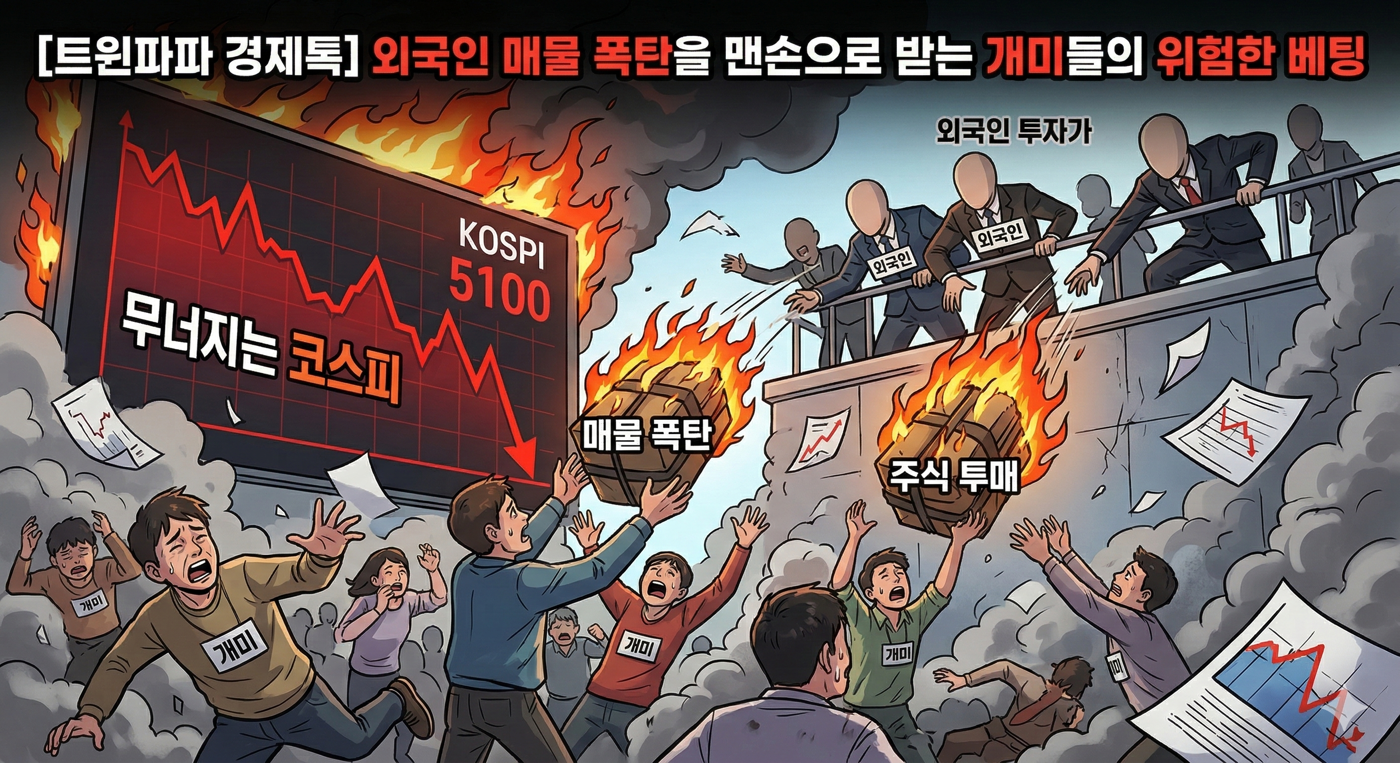 "지금이 바닥이라고?" 코스피 5100선 붕괴, 외국인 물량받이로 전락한 개미들의 무모한 불나방 베팅